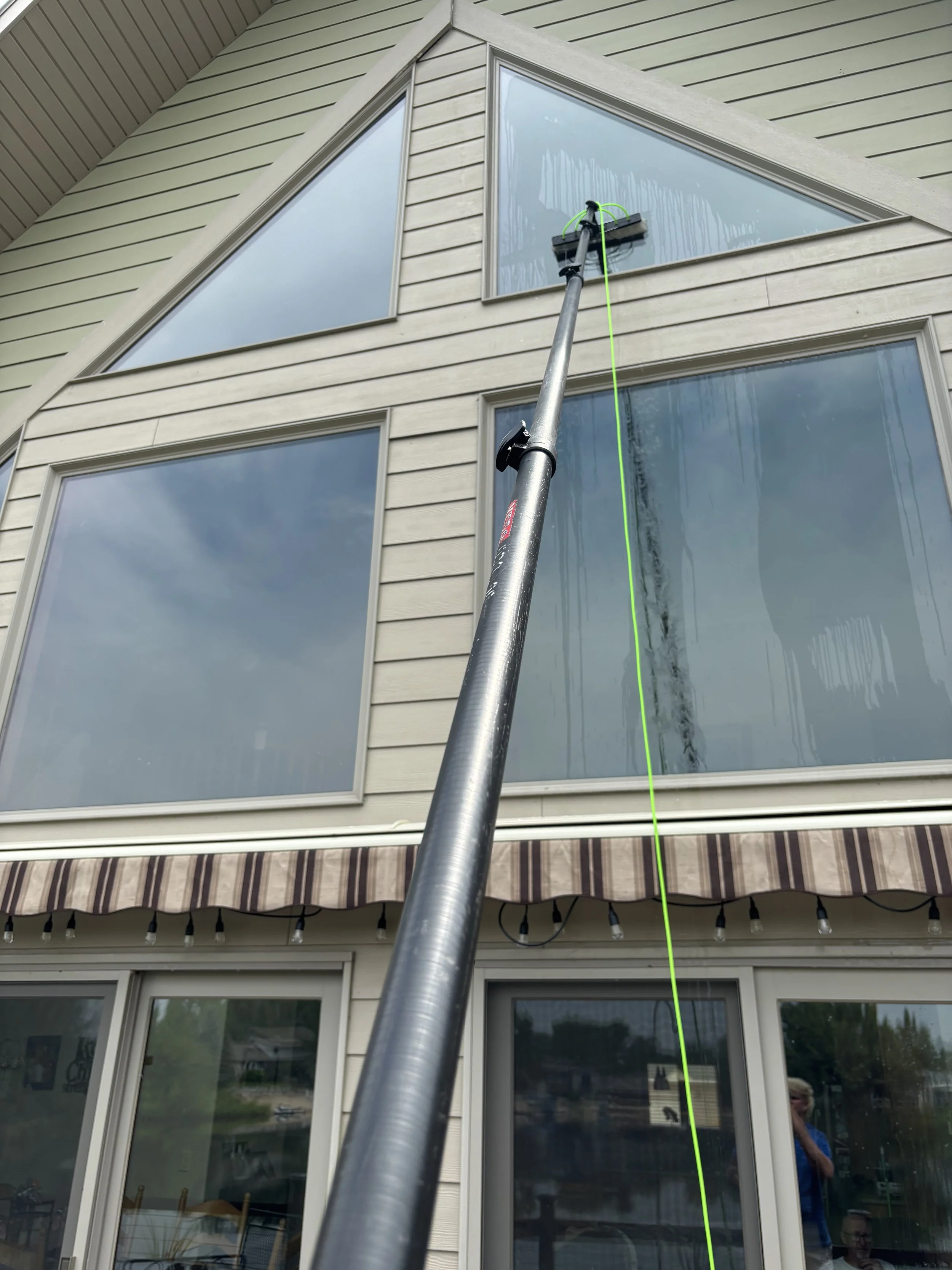 We use a RO/Di syestm to fully puirfy your homes water. Then it fliters into our bursh through into our Carbon Fiber pole. Then use scrub the windows and rinse till clean! YES! its complety safe NO chemicals just complete Pure water